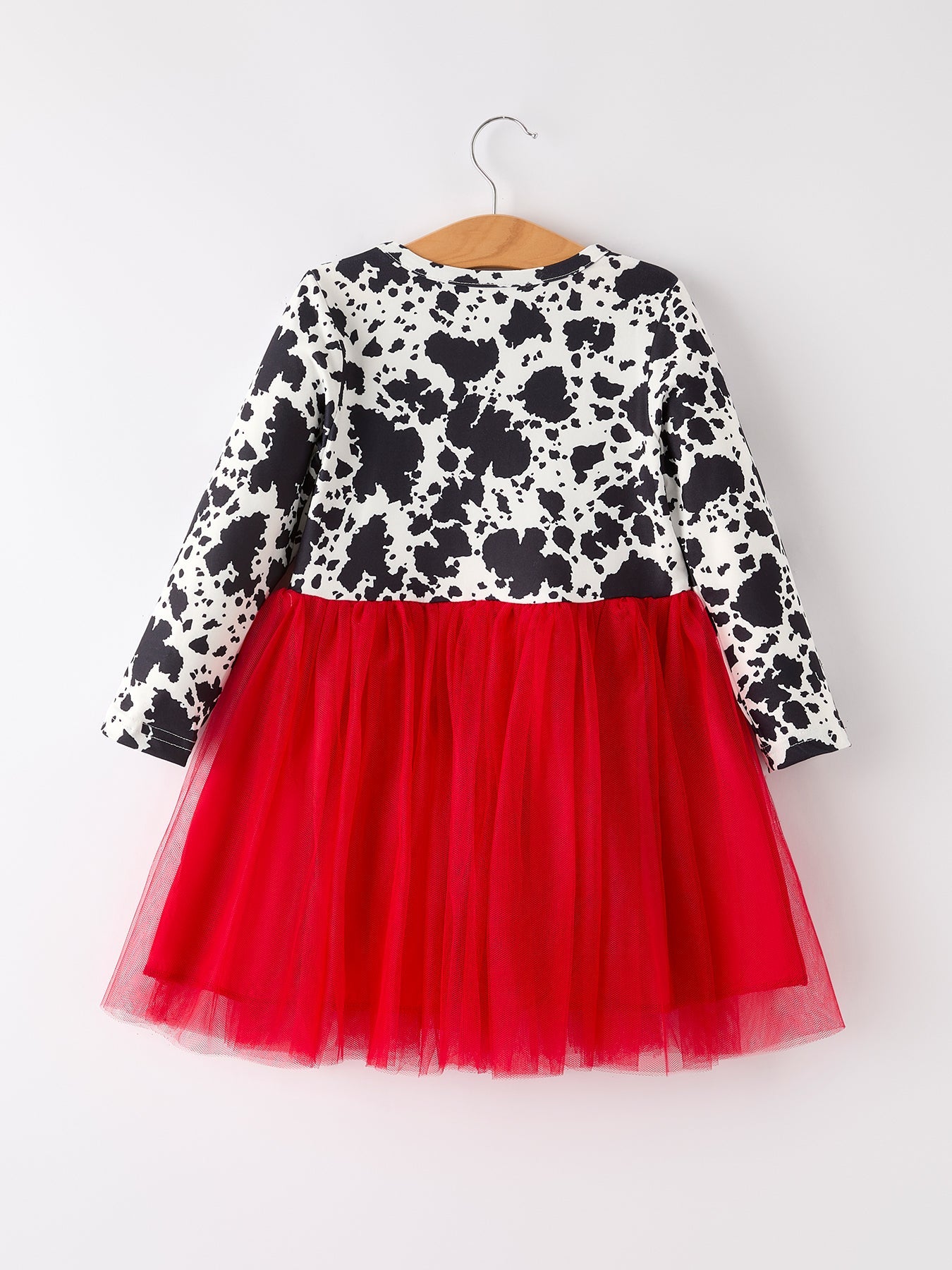 Autumn Cow Pattern Girls Long Sleeve Dress