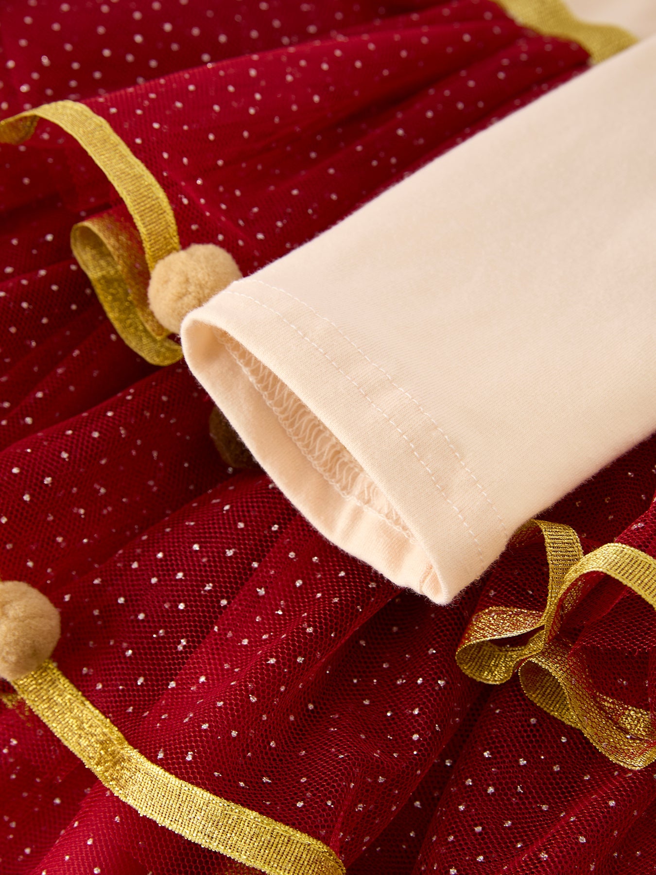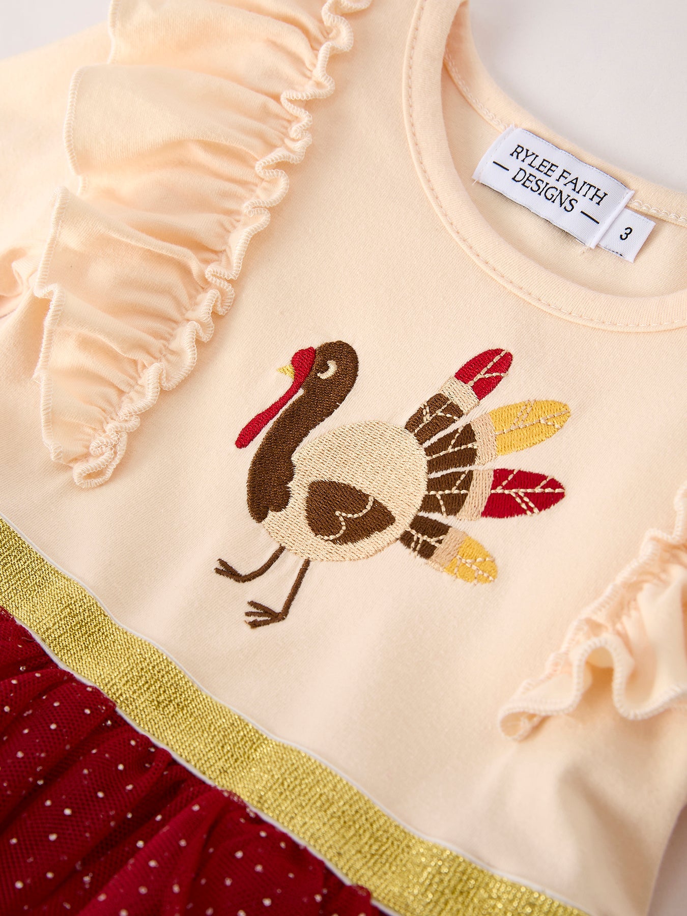 Autumn Thanksgiving Tulle Red Girls Long Sleeve Dress