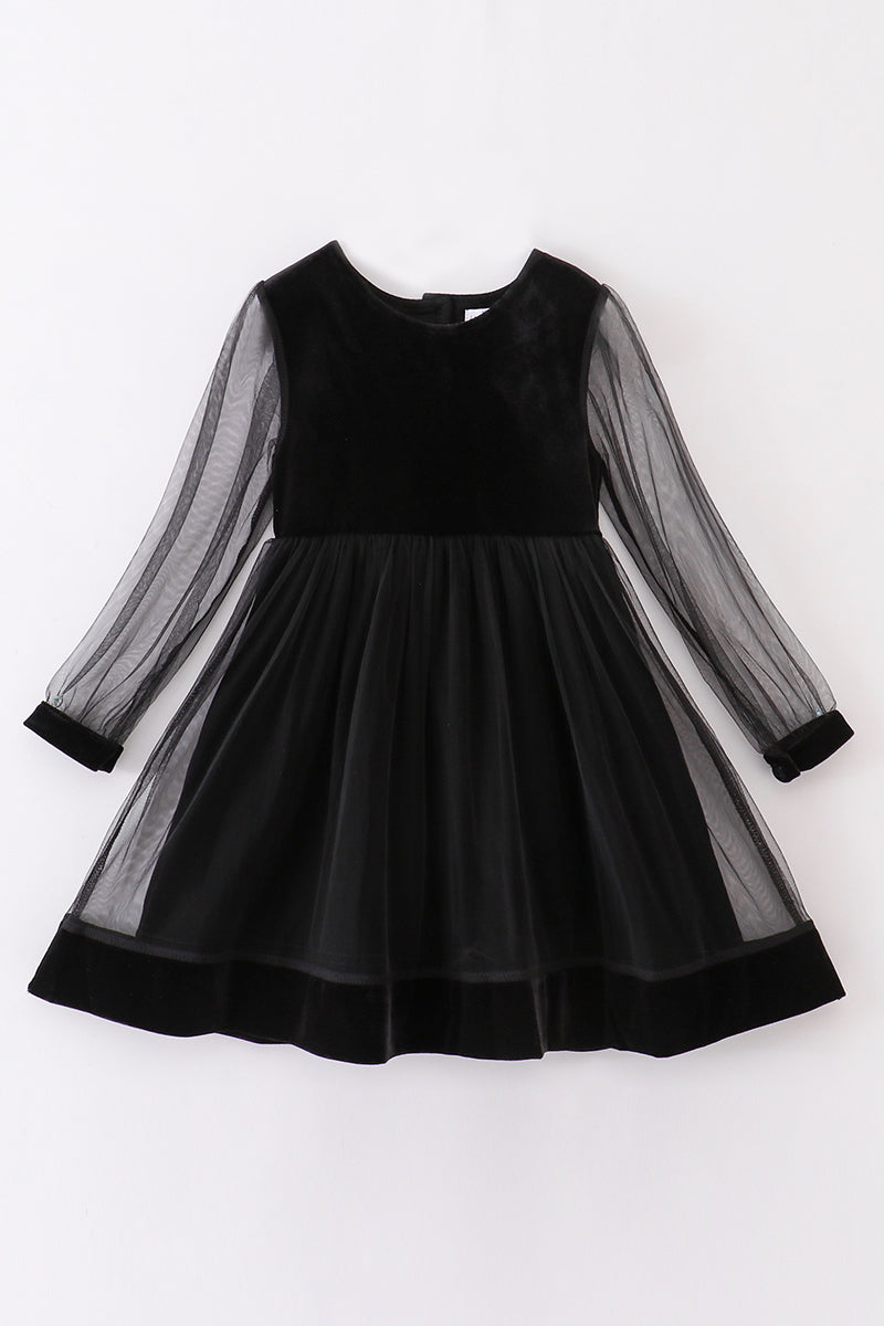Premium Black velvet ruffle girl dress