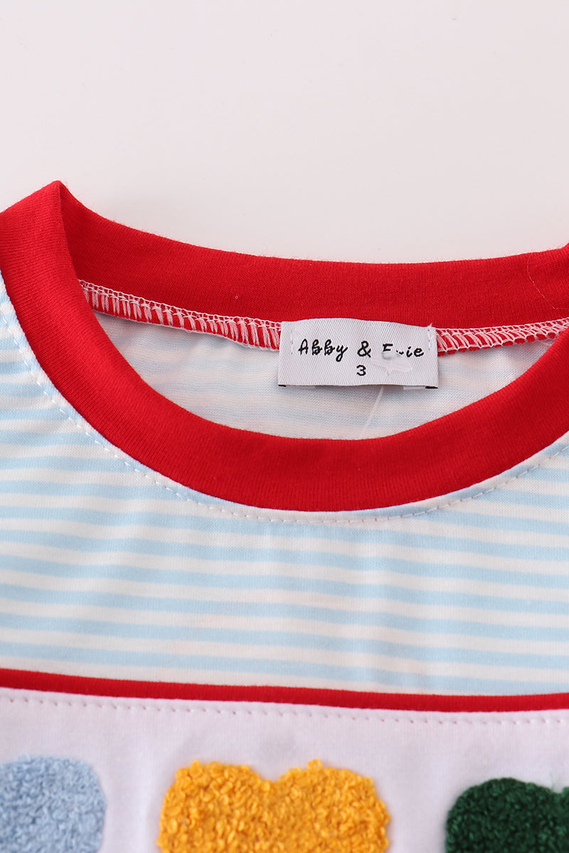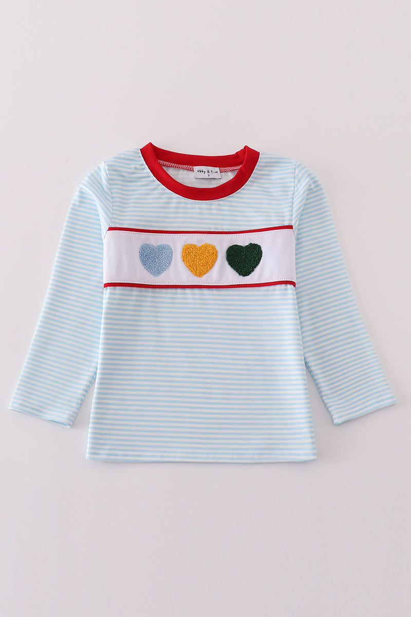 Get ready to steal the hearts of everyone with our Blue Stripe Heart French Knot Boy Top! Featuring a stylish blue stripe pattern and a charming heart french knot design, this top is sure to make a statement. Perfect for any occasion, this top will keep your little man looking cool and cute.