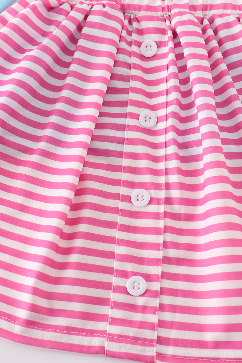 Dress up your little sweetheart in our blue valentine heart french knot girl skirt set! With delicate hand-sewn details and a charming design, she'll be the talk of the playground. Perfect for any occasion and sure to bring smiles (and heart eyes) wherever she goes.