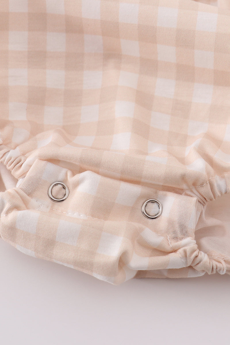 Hop into Easter with this adorable cross-embroidered boy bubble! Perfect for any celebration, this outfit is sure to make a statement. (No pun intended!)