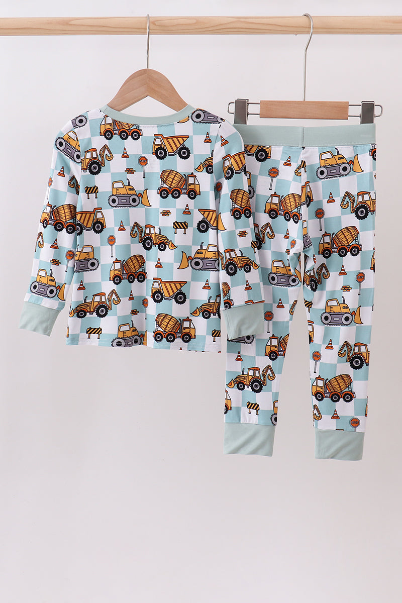 Green excavator checkered bamboo pants set