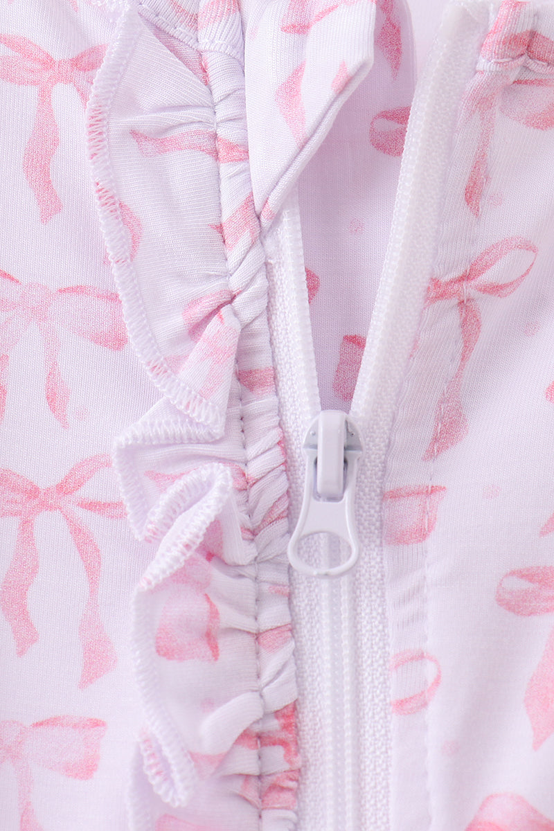 Premium tiny bow delight ruffle bamboo romper