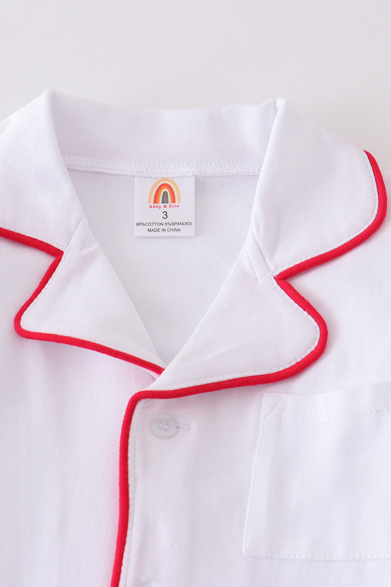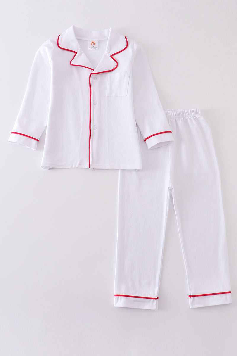 Snuggle up in our Premium White pocket boy pajamas set and float off to dreamland in luxurious comfort. The perfect blend of softness and stylishness, you'll be sleeping in style every night. Who said bedtime can't be fun?!