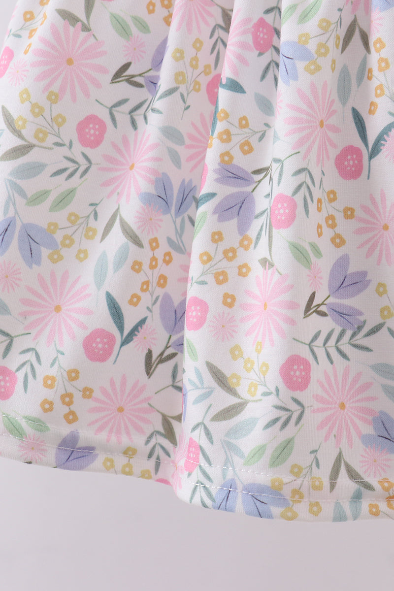 Twirl into springtime style with this adorable purple floral bloomer set! Featuring delicate smocked detailing and charming ruffled edges, it's the perfect blend of comfort and cuteness. The soft, breathable fabric keeps little ones cool while the elastic waistband ensures a snug fit for all-day play. Whether it's a garden party or casual weekend adventures, this sweet set brings effortless charm to any wardrobe.
