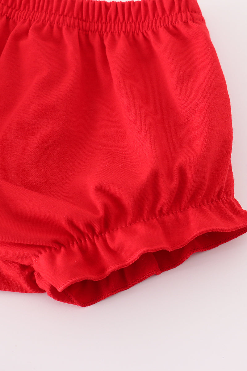 Red dot strawberry embroidery smocked bloomer set