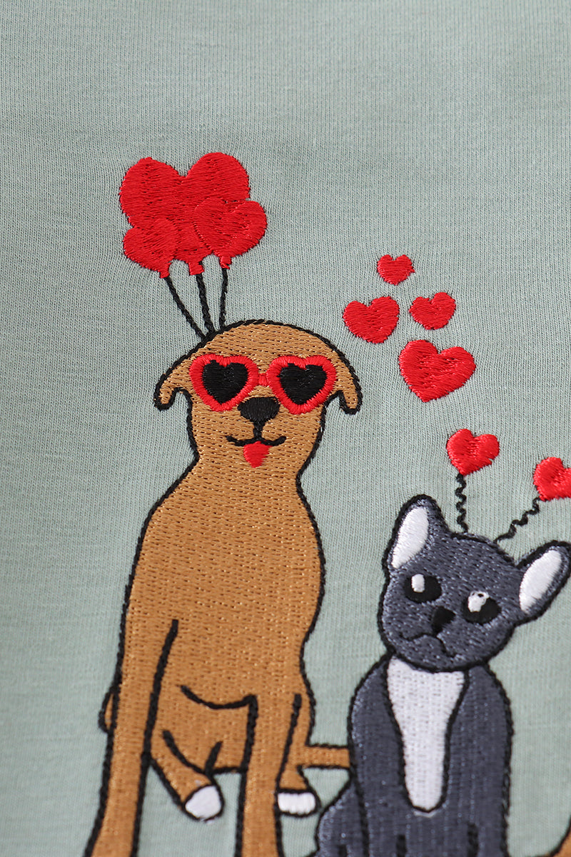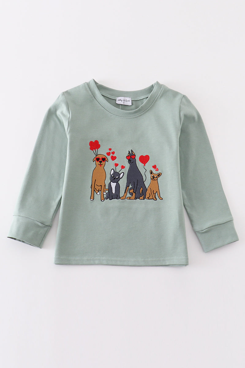 Celebrate Valentine's Day in style with our Sage Valentine Puppy Heart Embroidery Boy Top! This cute and quirky shirt features a playful puppy design with a heart embroidered on the front. Made with high-quality materials, it's comfortable for all-day wear. Spread love and joy with this must-have top!