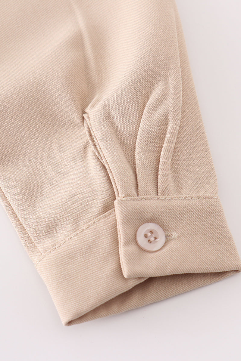 Add a touch of quirkiness to your wardrobe with the Sand Boy Button Down Shirt. Made with soft and comfortable fabric, this shirt is perfect for a casual day out. The unique design and playful buttons make it a must-have for anyone looking to add some fun to their style. (No more boring shirts here!)