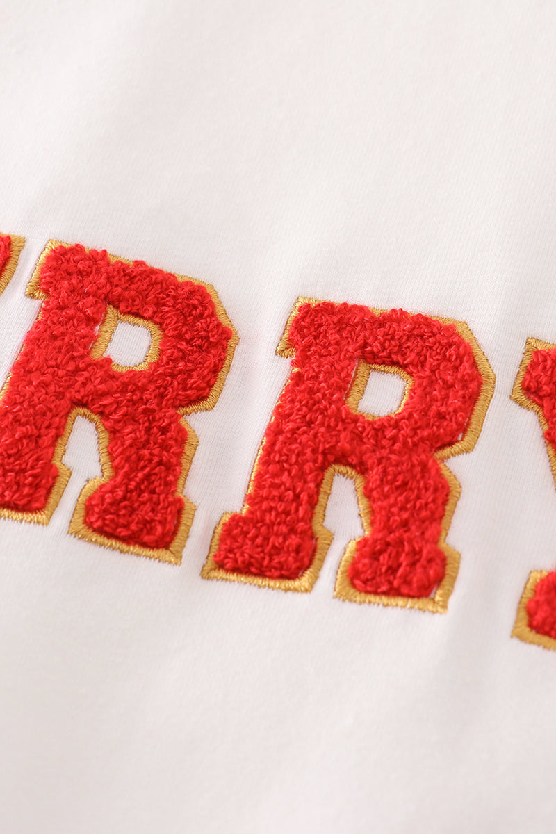White merry christmas french knot women top